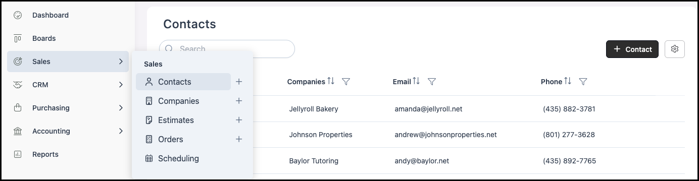 Creating Contacts in CoreBridge allows you to track sales, link Companies, and take record of important information related to the Customer. Creating Contacts is a necessary step that will need to be repeated as your business expands.