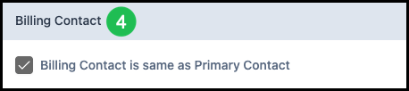 4. Select Billing Contact is same as Primary Contact, or, fill out the appropriate information for the desired Billing Contact.
