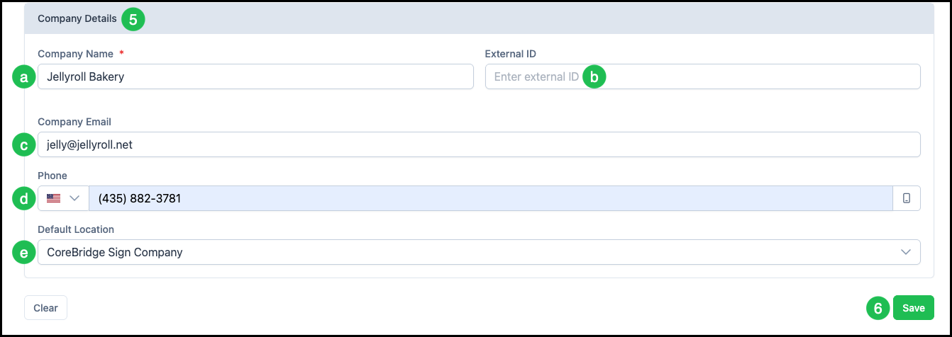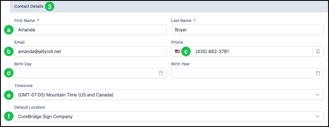 d. Phone - Enter only numbers; the system will format the number based on Settings / System / Localization.