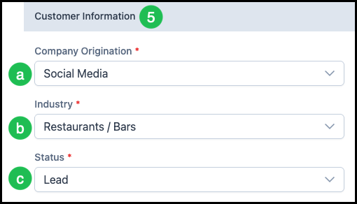 Note: A newly inputted Customer will automatically be set as a Lead. Once this Customer is used in an Estimate, the status will update to Prospect. Once the Estimate had been converted into an Order, or a new Order has been created using this Customer, the status will update to Customer.
