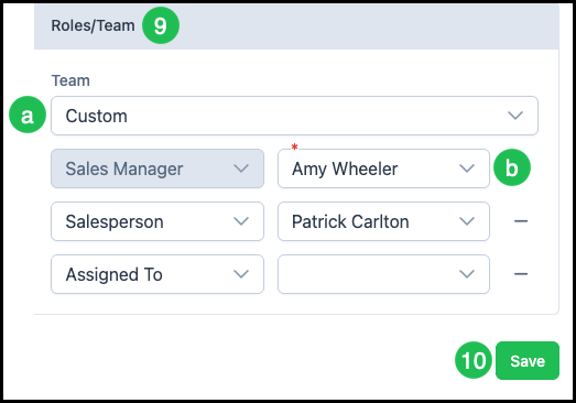 a. If you select Custom Teams, you can add employees to Roles from this screen. If you choose a preselected Team, the Roles and employees will be auto-filled which cannot be edited at the company level.