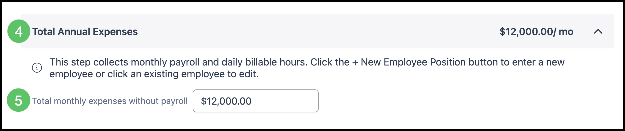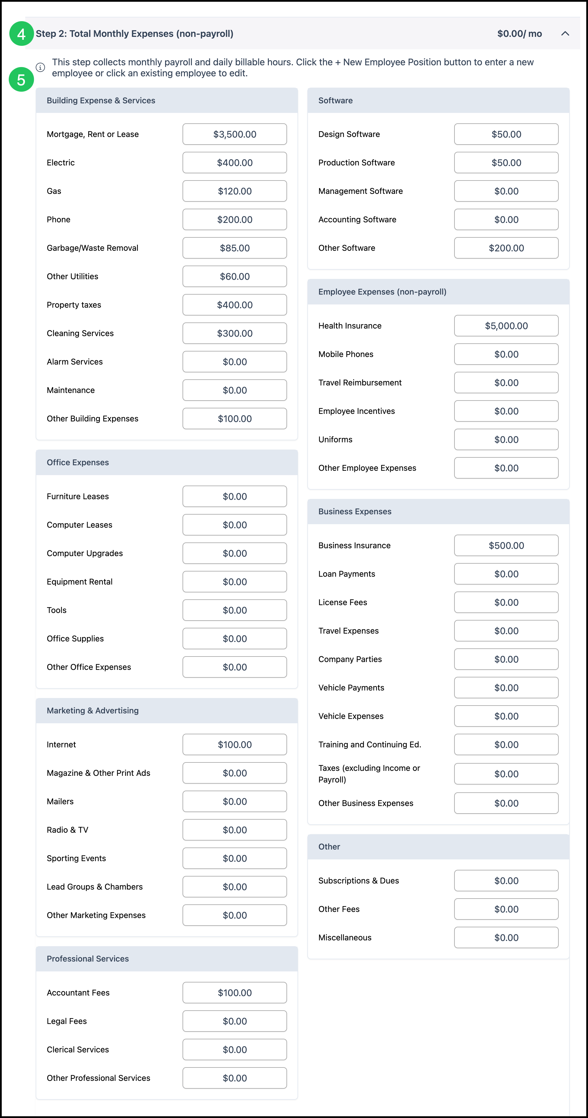 5. Complete as many fields as possible to ensure an accurate picture of your actual monthly expenses, not including payroll.