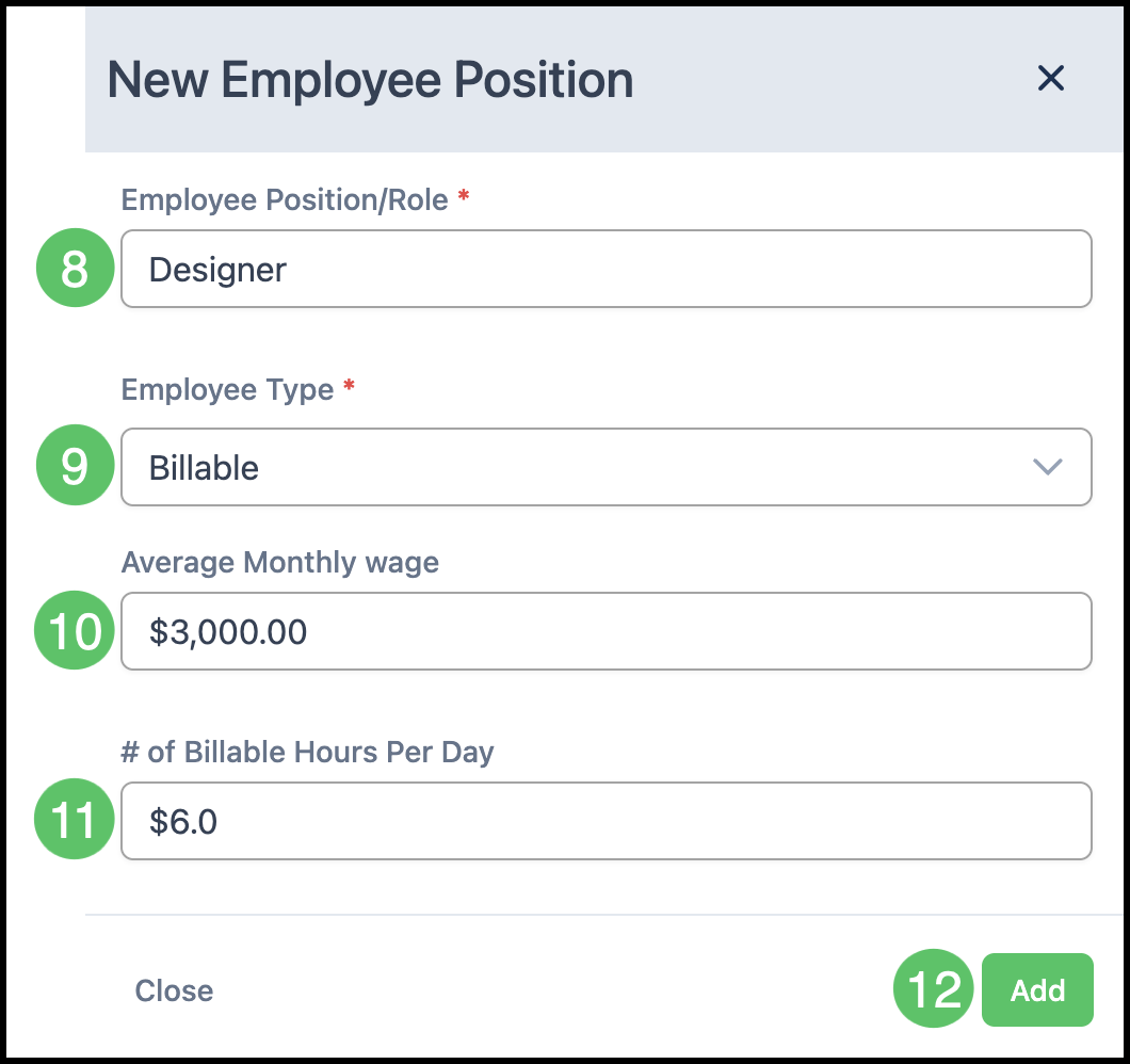 Note: Steps 7-12 can be repeated as many times as is necessary to enter in all needed Employee Positions.
