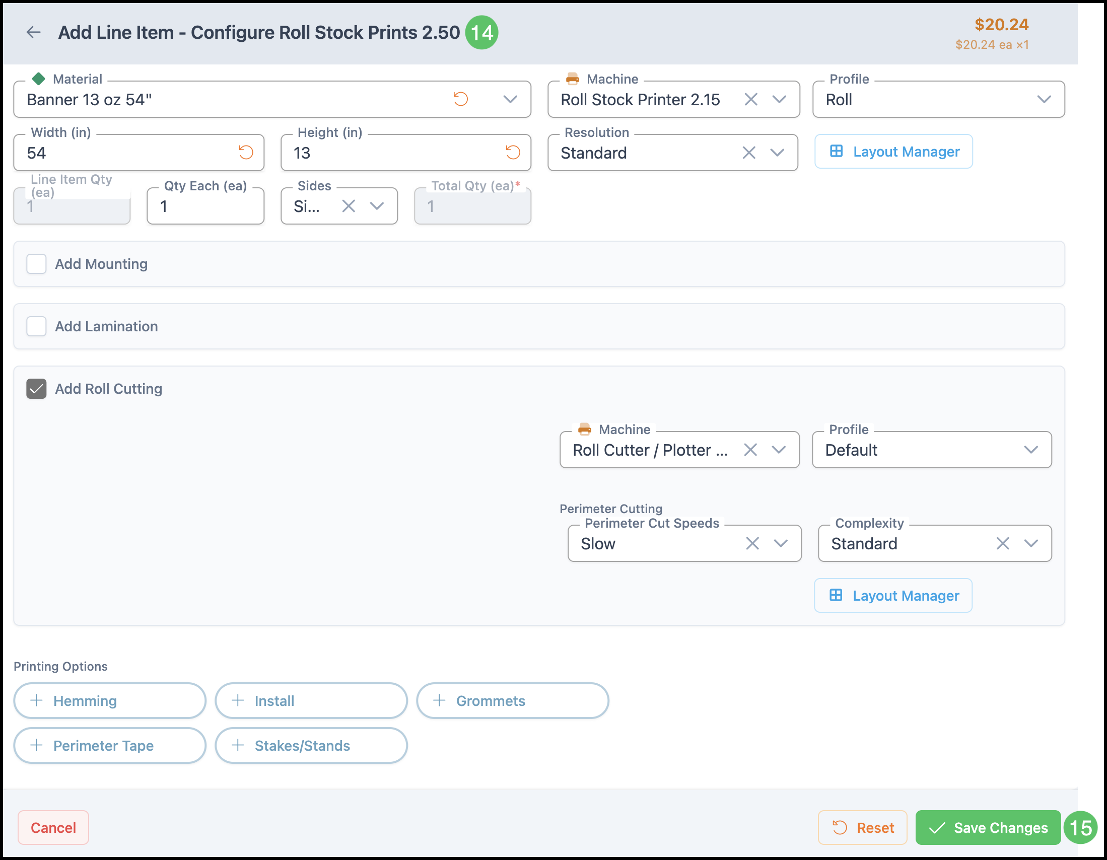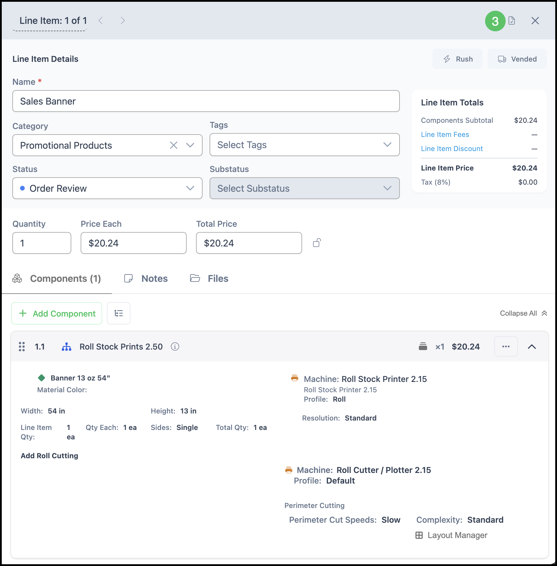 Note: The options to include and/or require a Line Item Category at this stage can be managed in Settings / Sales Settings / Estimate and Order Options / Orders.