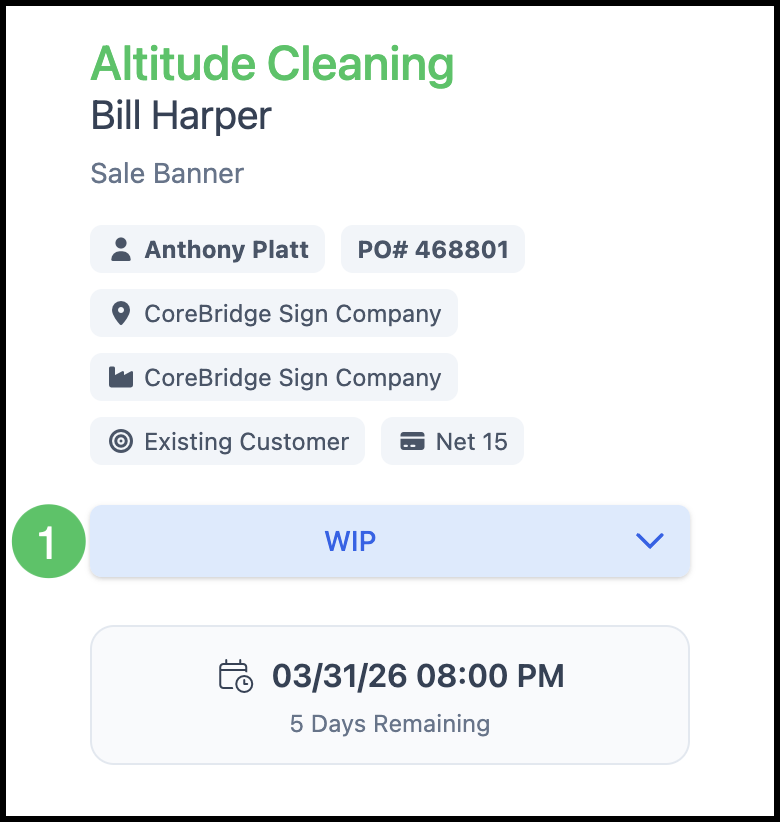 b. WIP (Work in Progress) - The Order is currently being worked on. Substatuses may be available to show where it is in the process.