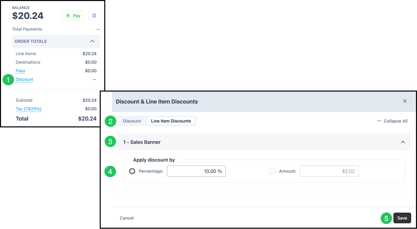 4. Select between a Percentage or Amount and enter the desired discount.