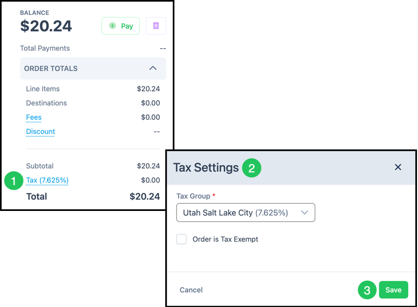 Use this section to manage the financial details of the Order by adding fees, applying discounts, and updating tax settings. You can also record payments and view payment history to keep the Order total and balance up to date. For more information, please see Tax Groups.