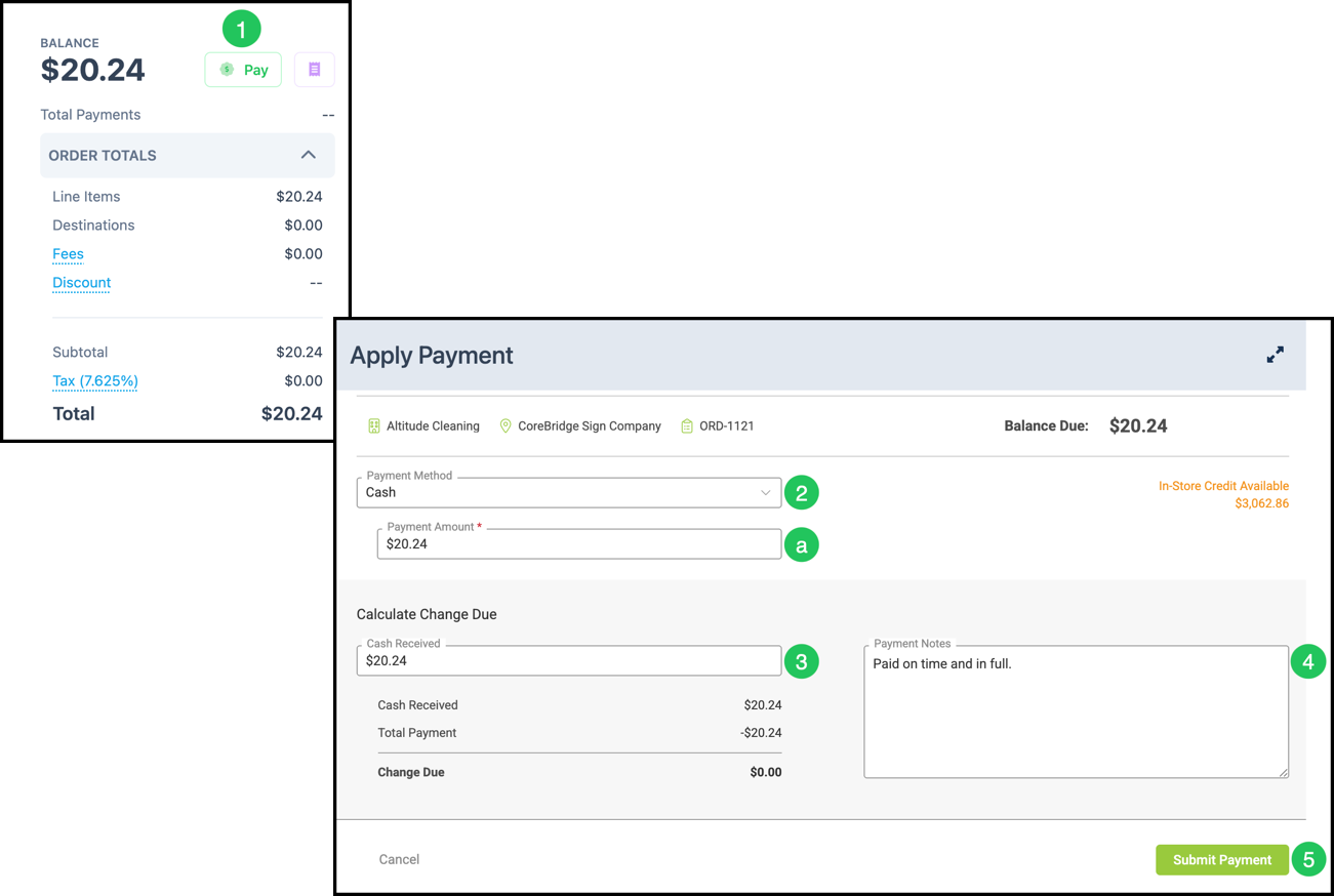 a. The Payment Amount. automatically populates with the Balance Due, but can be adjusted.