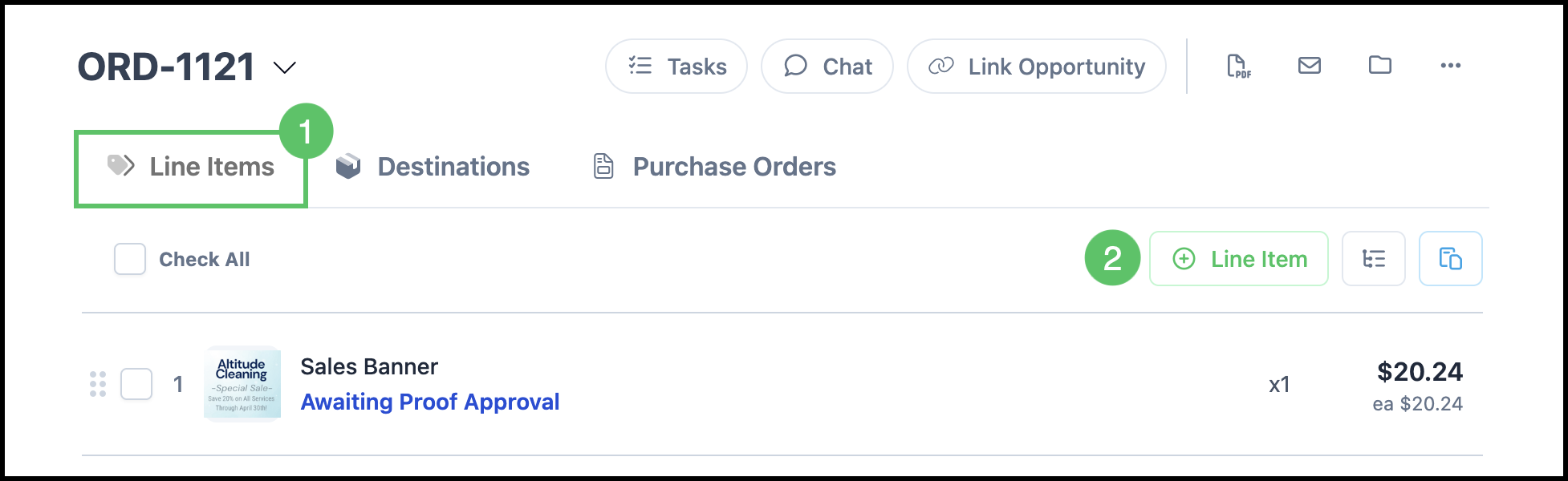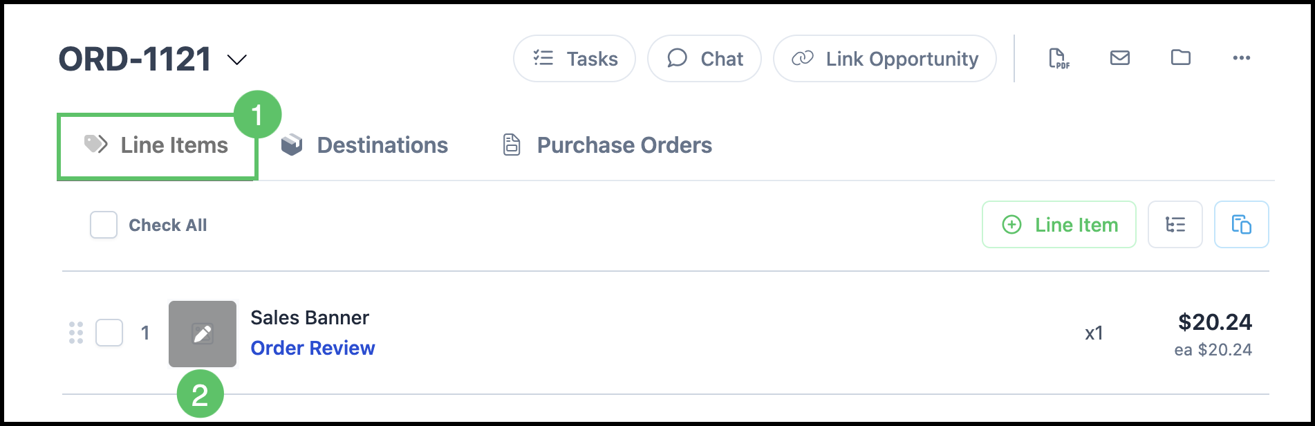 1. Select the Line Items tab.