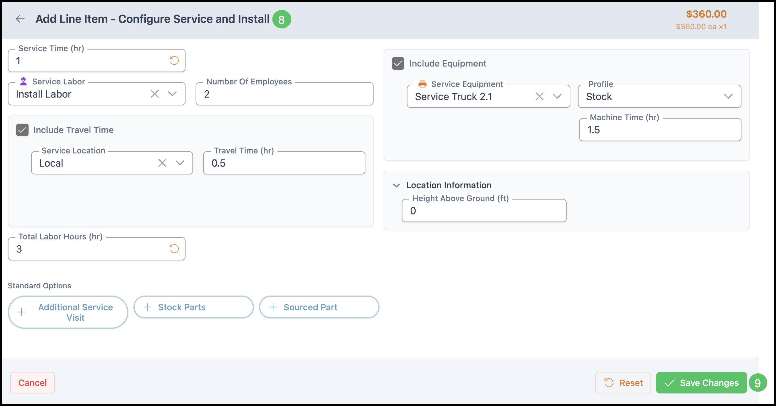 Note: Once converted to an Order, the Estimate is locked and further adjustments must be made on the Order. See example below.