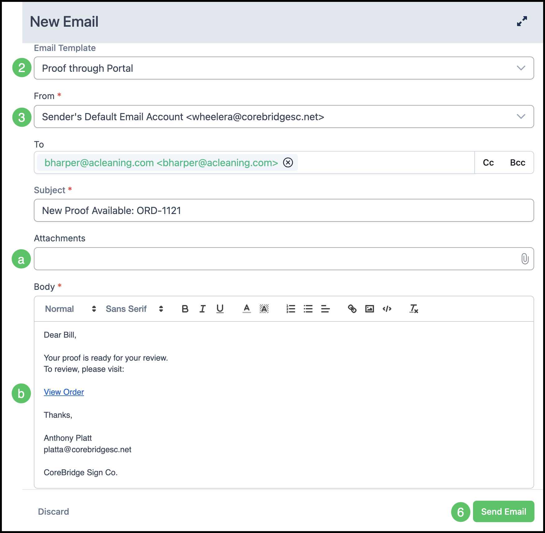 b. Email Templates can be created to include a link to the Customer Portal where the Customer can view the Order and Proof online. For more information, please see Creating and Editing Email Templates.