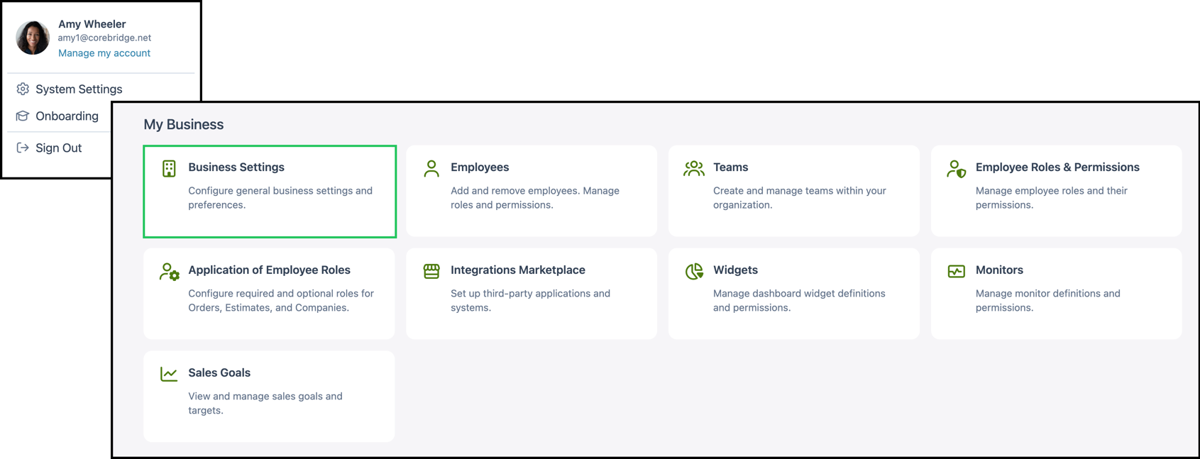 Navigate to System Settings / My Business / Business Settings.
