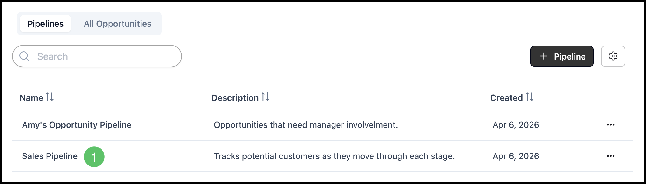 a. This allows you to quickly navigate between the Pipelines screen and All Opportunities.