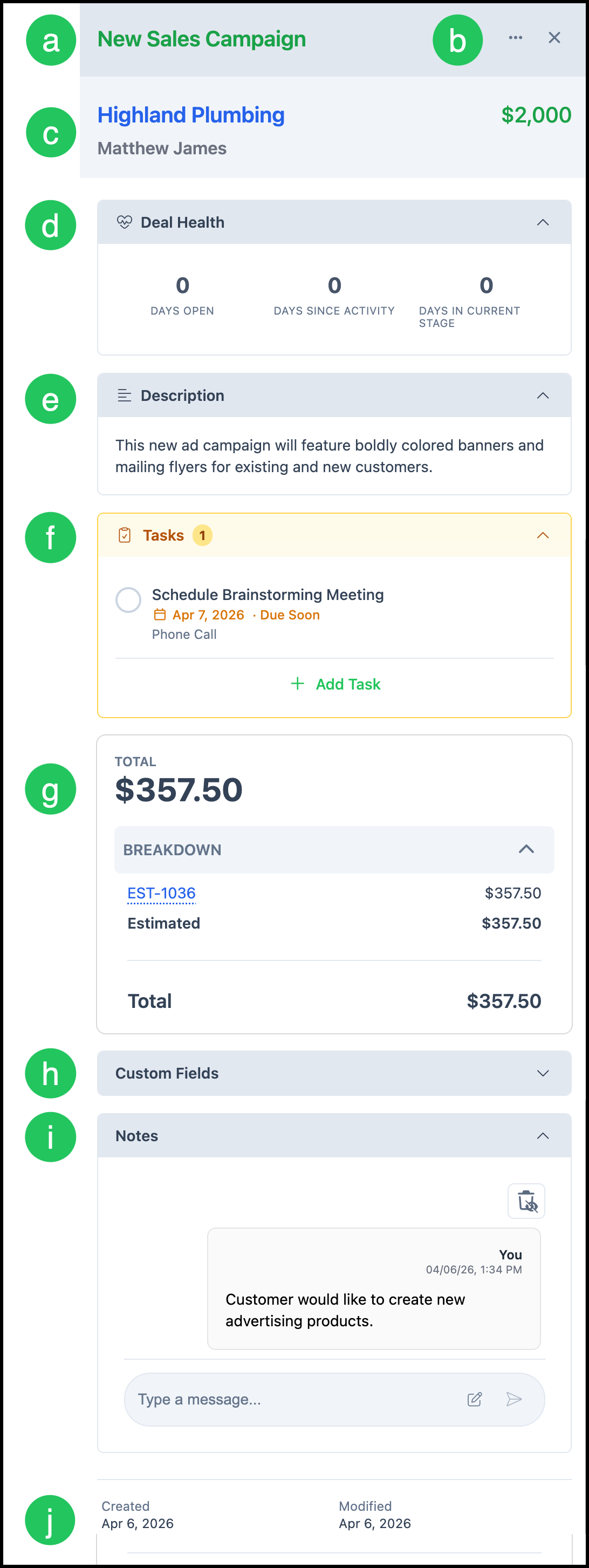 f. Tasks allows you to create and view the Tasks associated with this Opportunity.