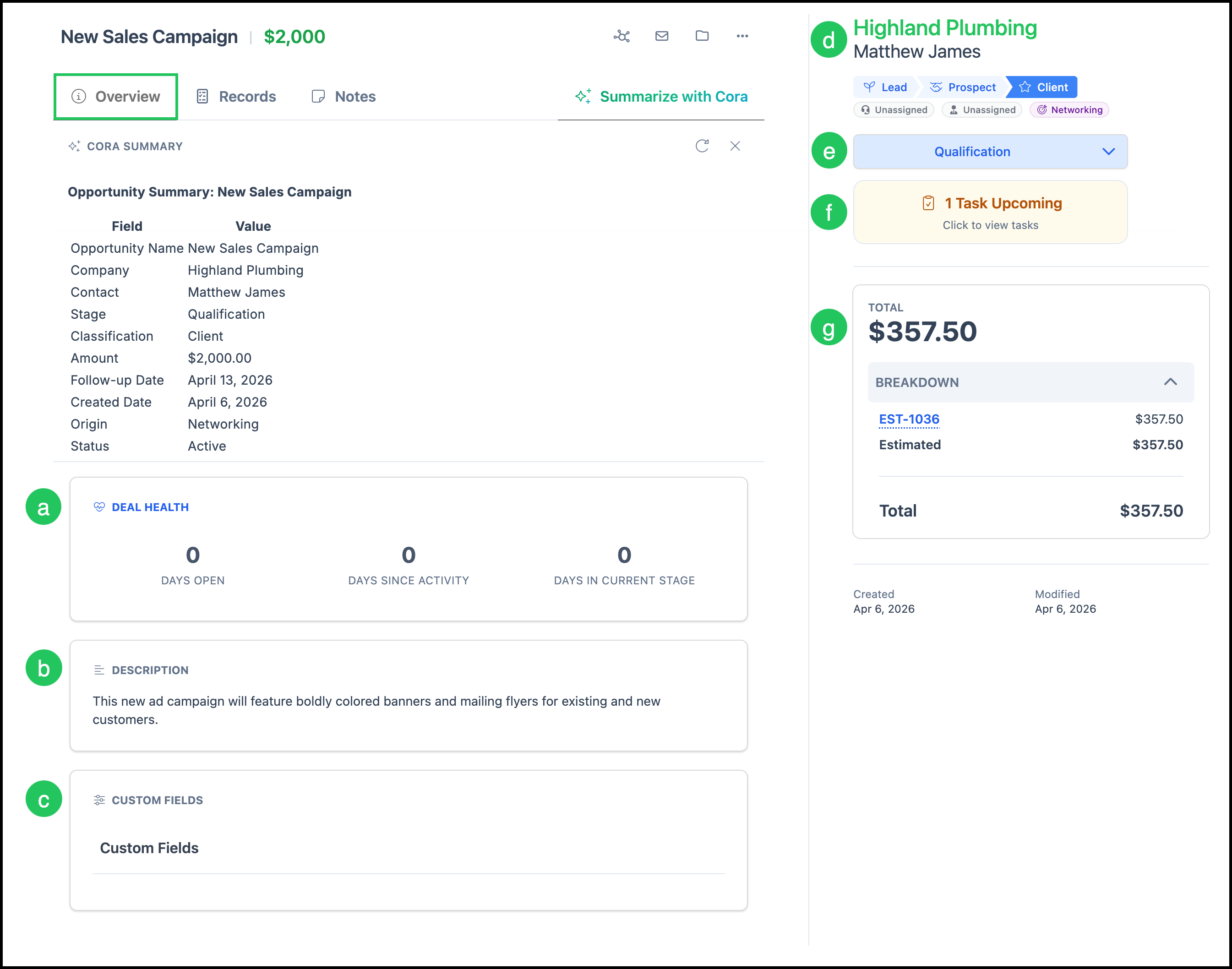 b. The Description of the Opportunity can be viewed and edited here.