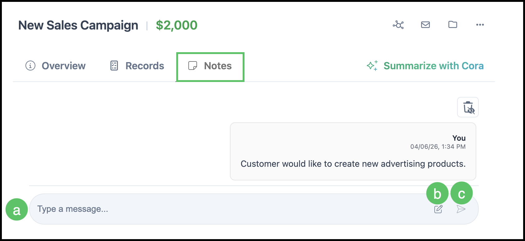 i. Notes provides a place for internal conversations regarding the Opportunity.